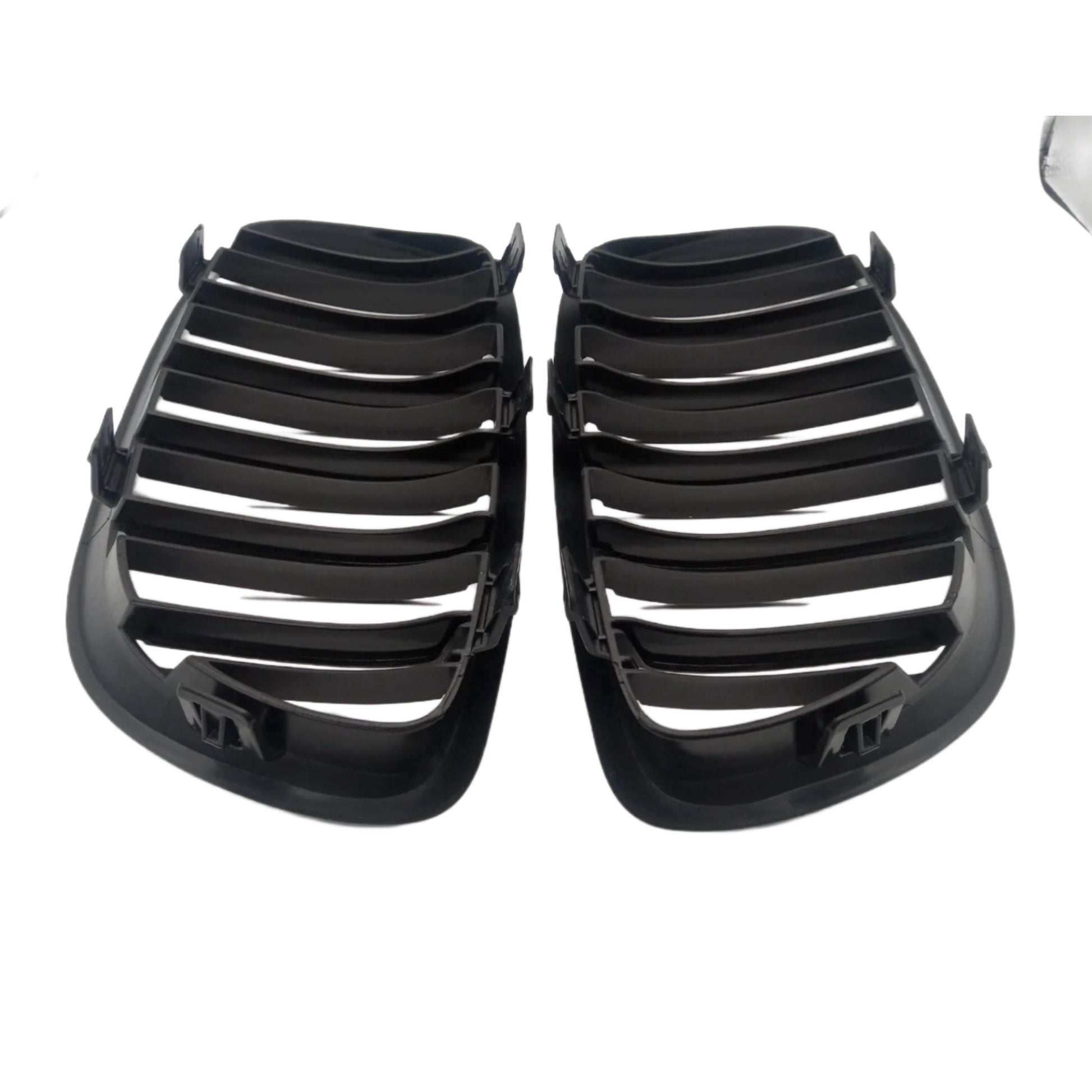 One pair of high quality ABS gloss black double-slat kidney grilles (left & right)