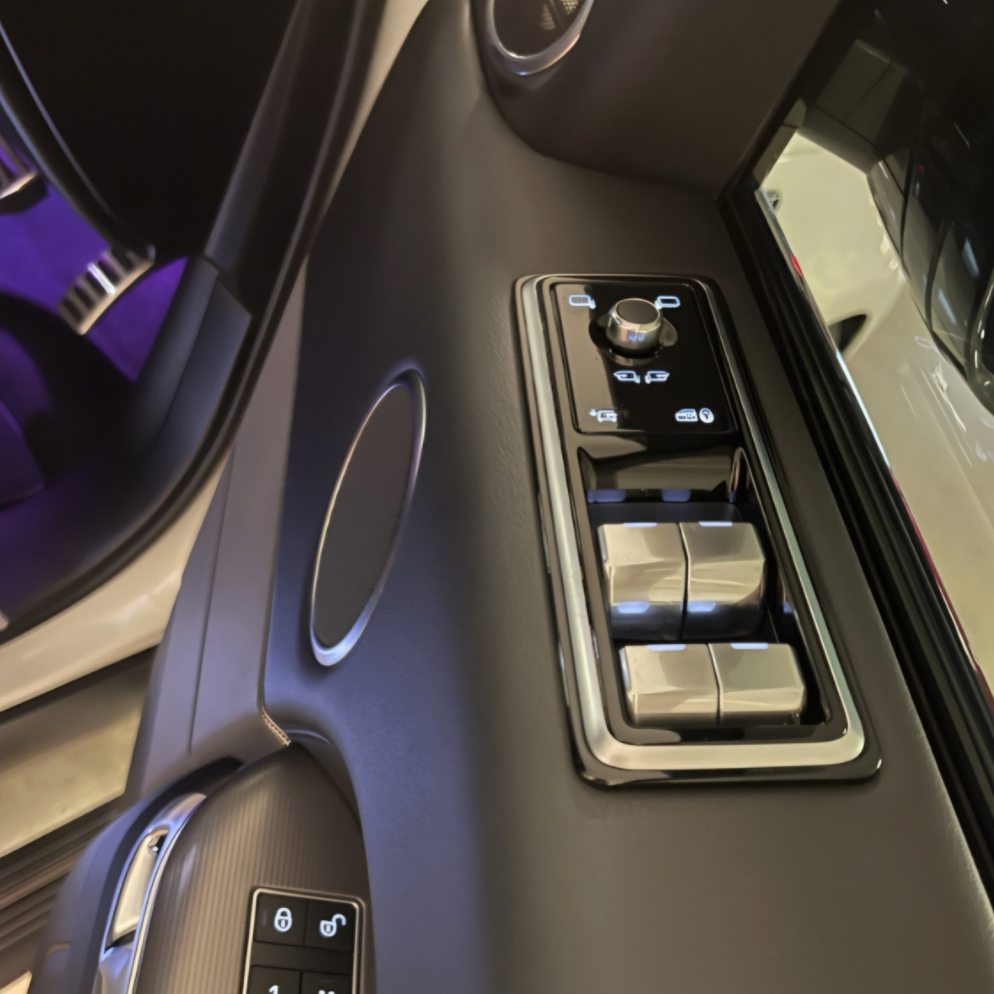 This upgrade includes a full set of front and rear window switch panels styled after the 2018+ Range Rover Sport. The design features subtle illumination, a smooth digital button action, and a brushed silver surround for a sleek, factory-like appearance.