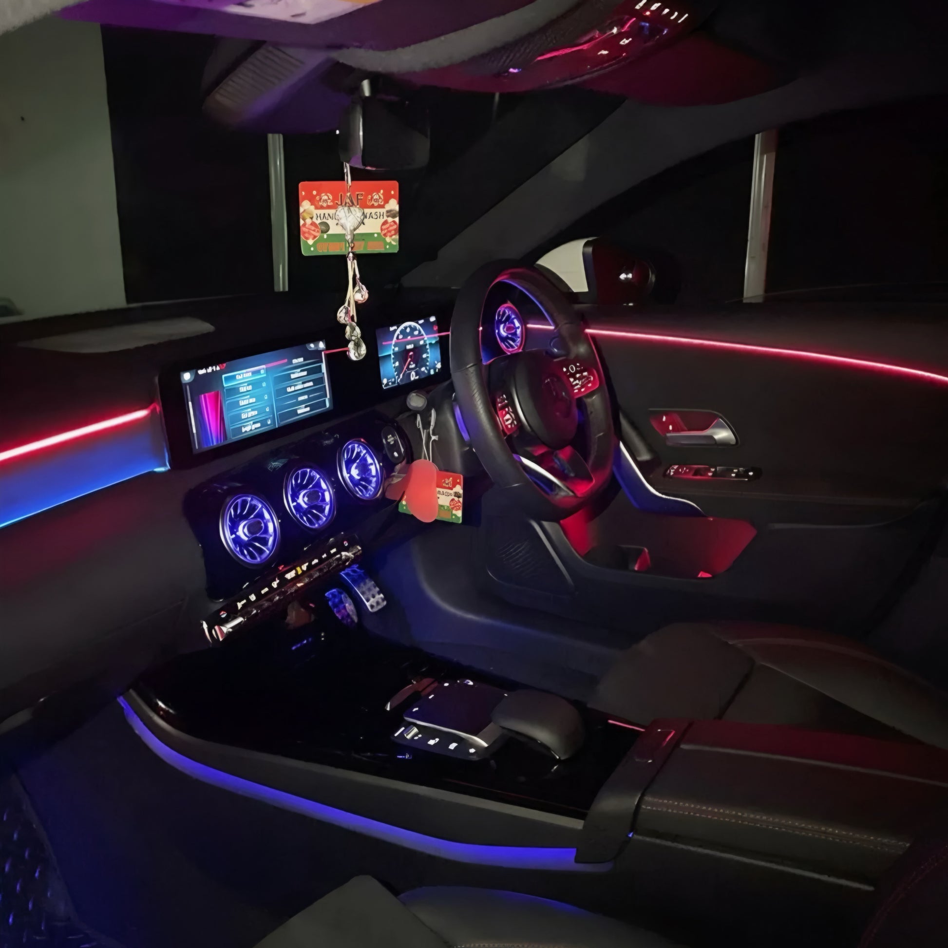 Enhance your Mercedes-Benz A-Class W177 interior with the genuine OEM ambient lighting package.