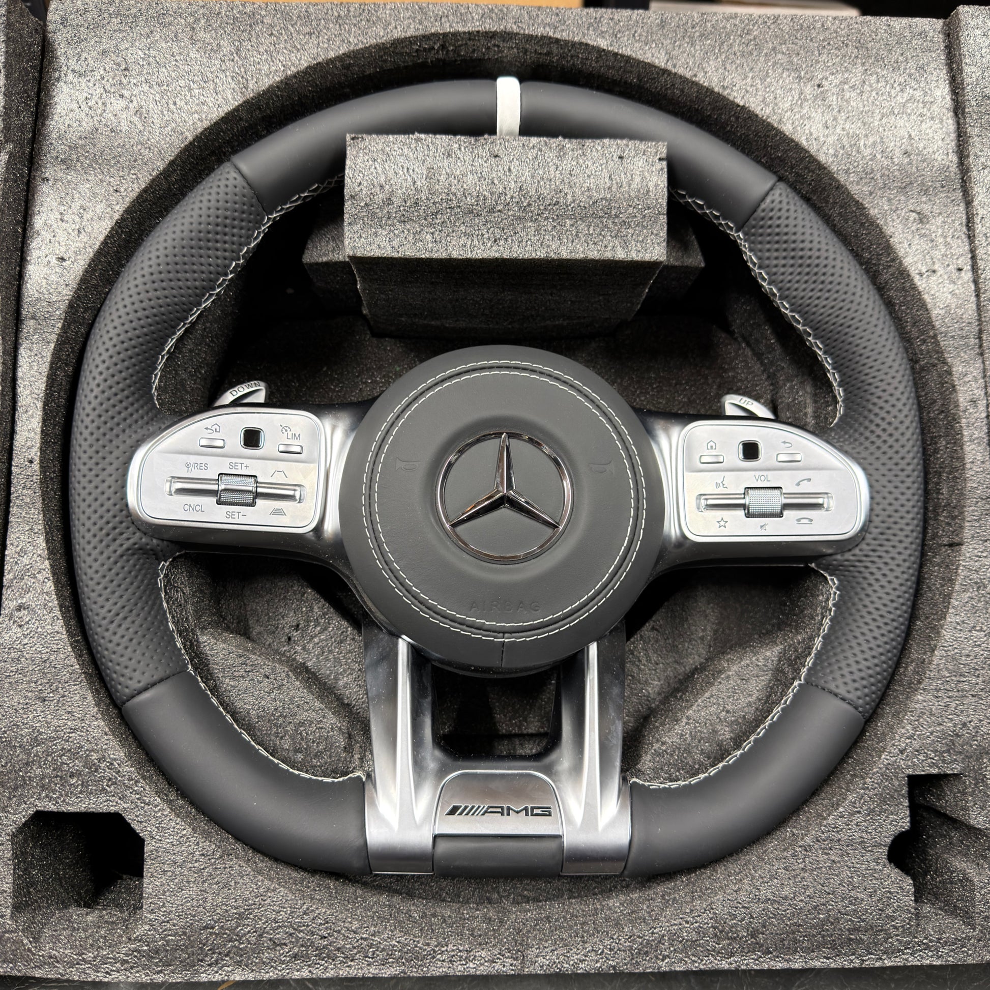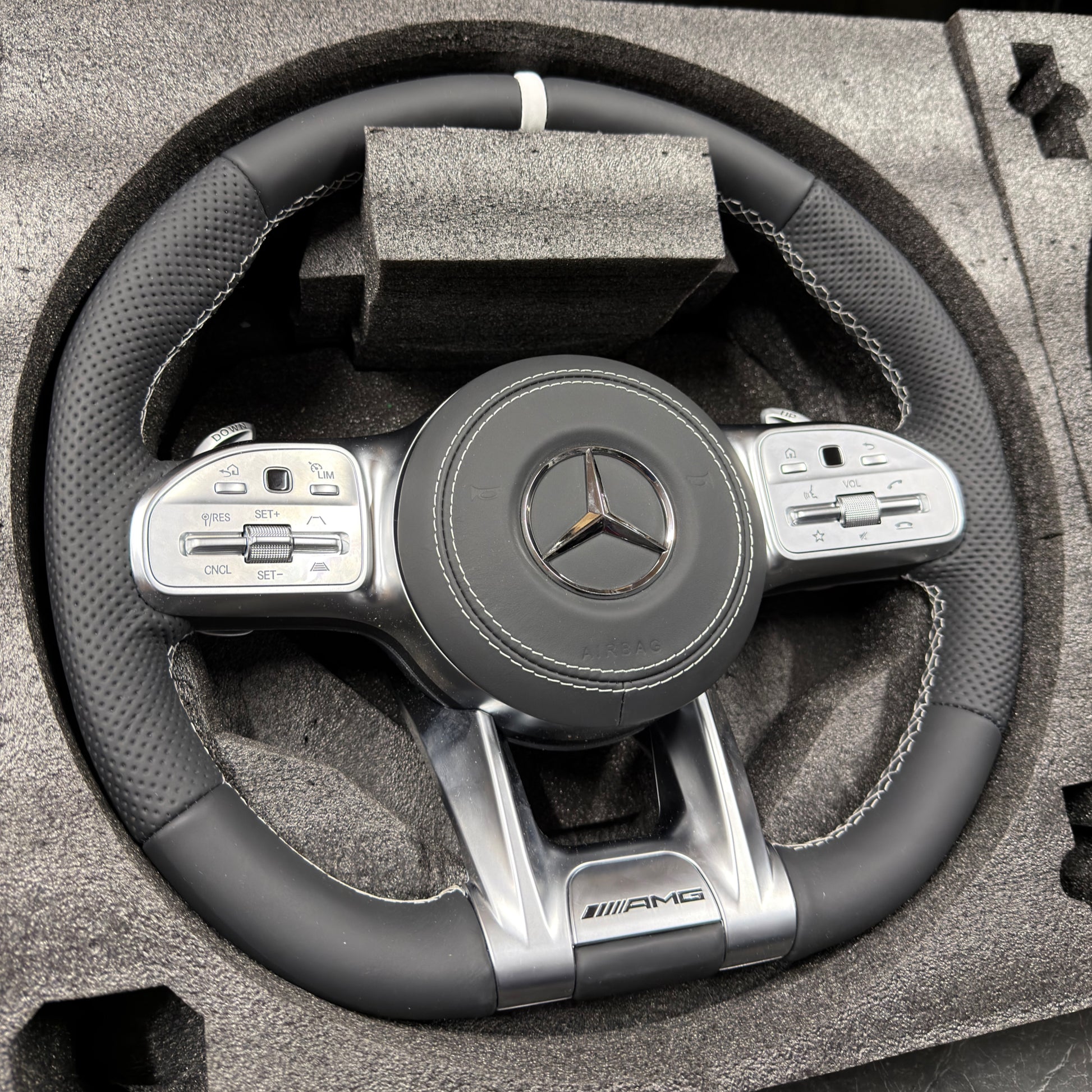 Make a statement with our Mercedes-Benz custom steering wheel upgrade – featuring a flat-bottom design and improved grips.