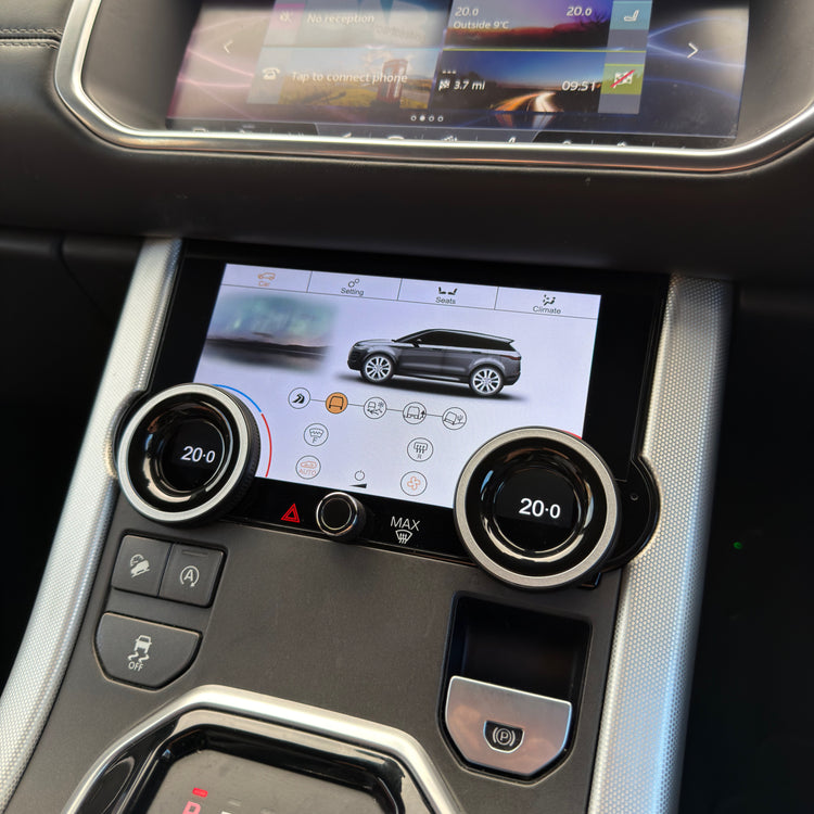 Upgrade your Range Rover Evoque’s centre console with our 7" HD LCD touchscreen – a premium enhancement that modernises your climate control system without disrupting the original interior design.