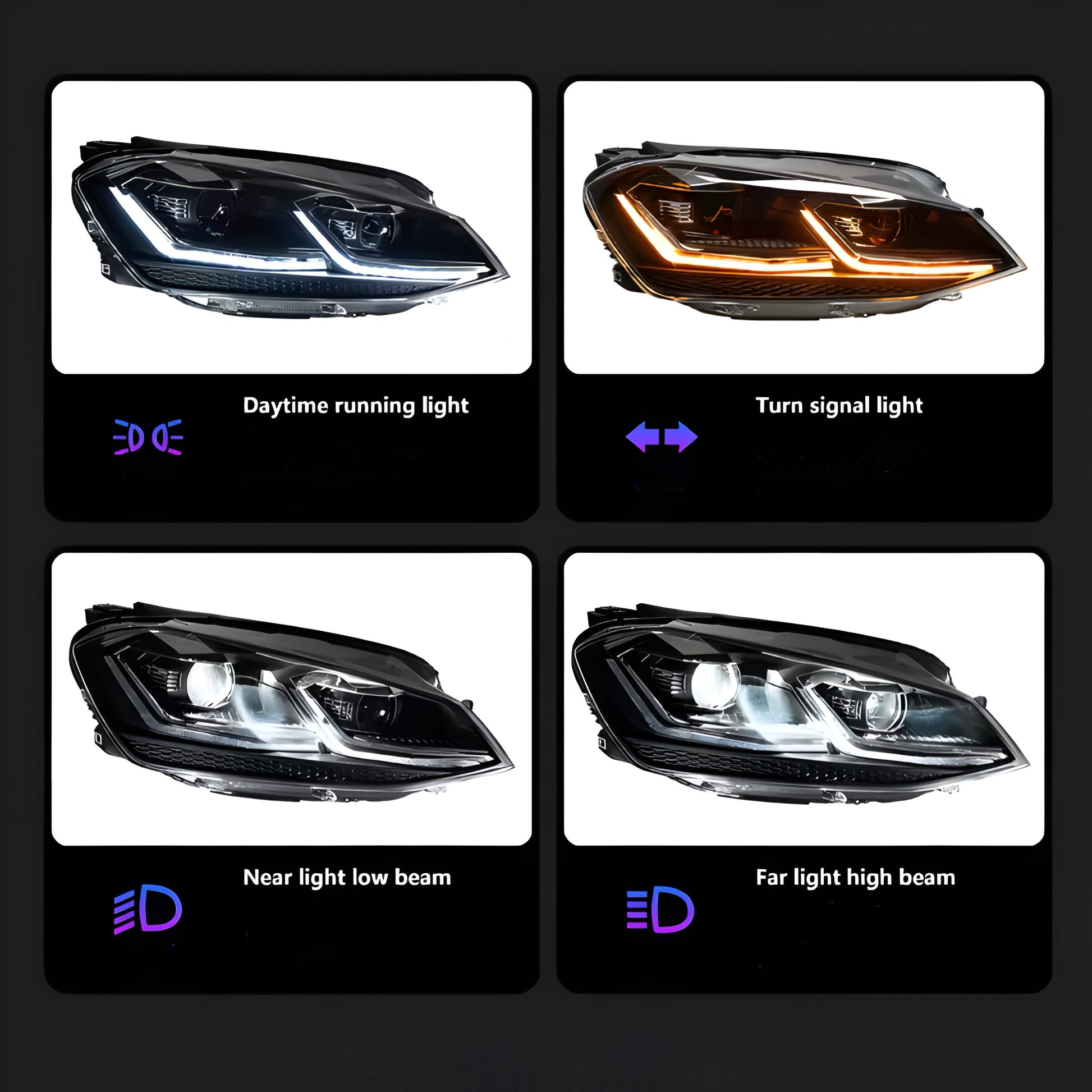 Transform the front end of your Volkswagen Golf MK7 or MK7.5 with our striking aftermarket LED headlights – designed to bring both visual impact and everyday practicality to your build. With sharp contours, signature LED DRLs, and sweeping sequential indicators, these lights offer a premium look that rivals top-tier OEM setups.